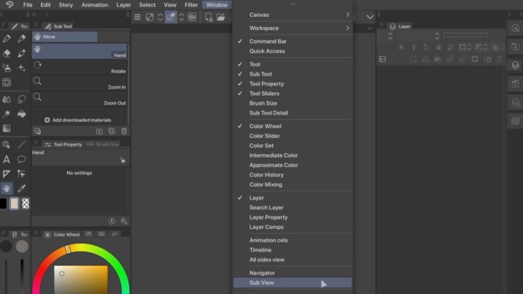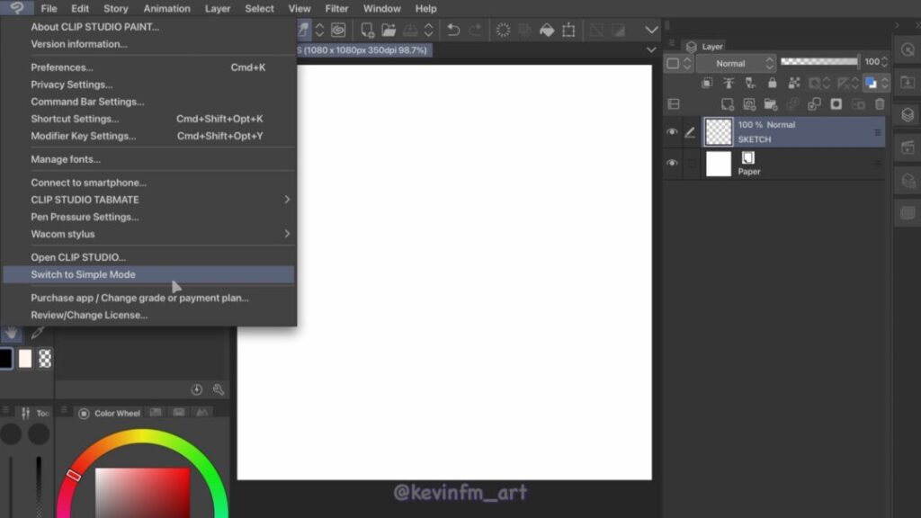 Si trabajas desde una tableta puedes utilizar el modo simple de Clip Studio. En mi caso, tengo un iPad Pro, para ello voy al menú principal y activo: Cambiar al modo simple.