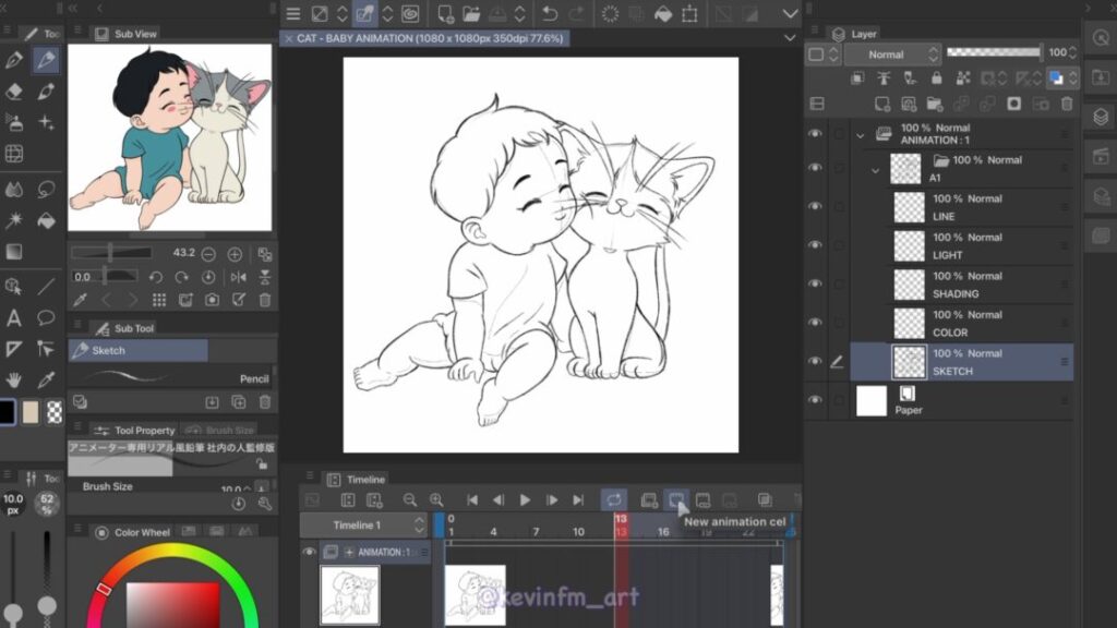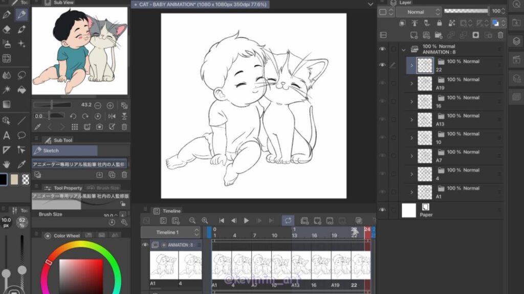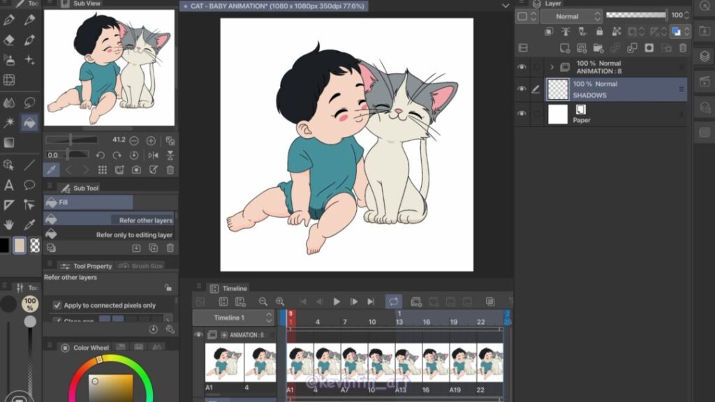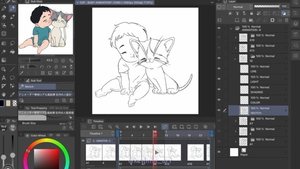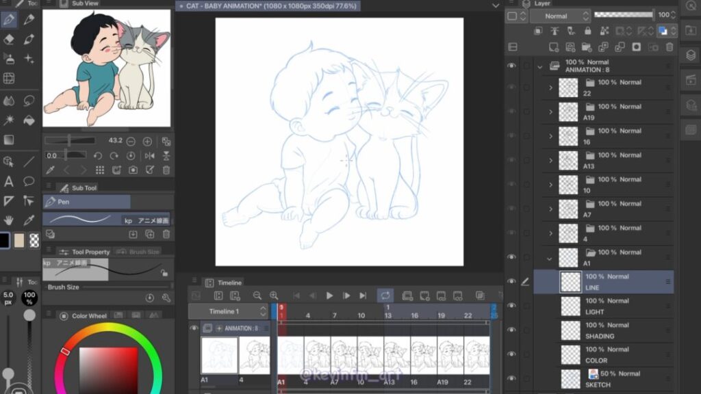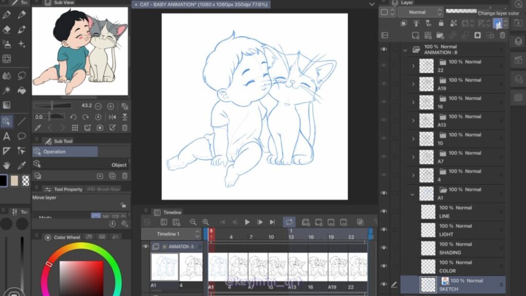 Hola! En este tip llamado ANIMA un TIERNO ANIMAL con Clip Studio PAINT te enseñaré como animar una tierna escena de un gato con un bebé inspirado en mi sobrino y el gato de mi hermana.