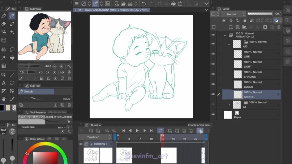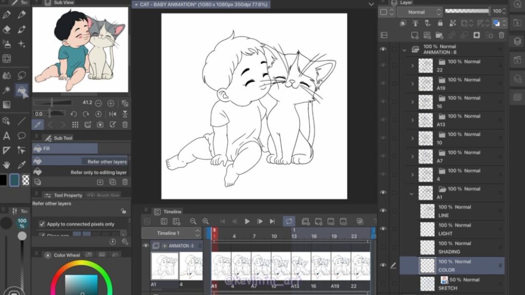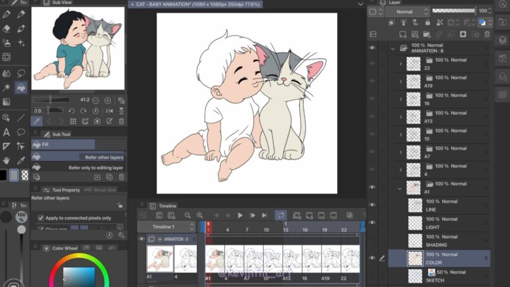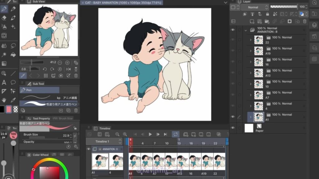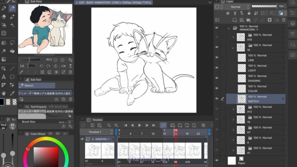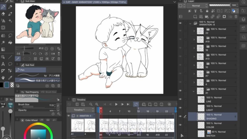 Hola! En este tip llamado ANIMA un TIERNO ANIMAL con Clip Studio PAINT te enseñaré como animar una tierna escena de un gato con un bebé inspirado en mi sobrino y el gato de mi hermana.